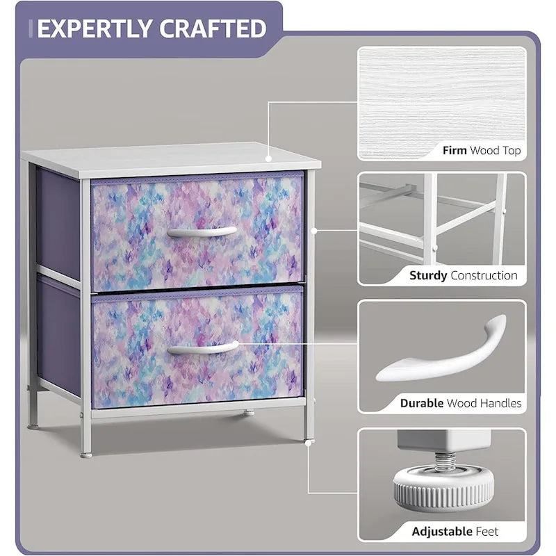 Add a pop of color and practical storage to your child's bedroom with the Sorbus 2-Drawer Nightstand. This charming dresser chest features a tabletop surface and spacious fabric drawers to store all your child's clothes, toys, and blankets. The playful pastel color combo complements any kid's bedroom or playroom decor, while the lightweight design makes it easy to move and store. Complete with easy assembly, this stylish and functional nightstand is a must-have for any busy family.
