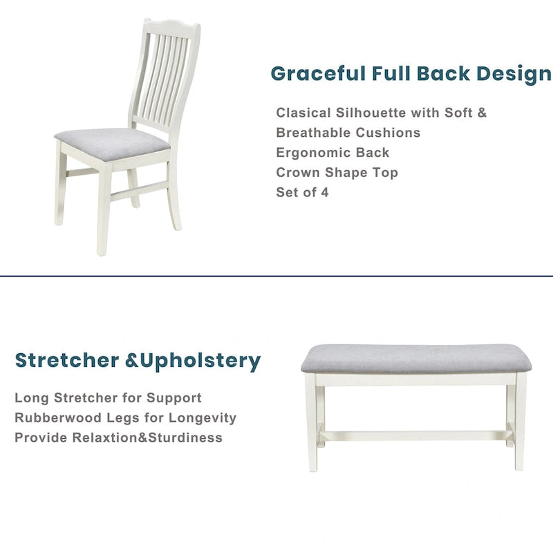 [Durable&Soft Kitchen Table Set] This dining set features durability and softness together. Rubberwood legs will keep the set stable while breathable cushions in all of chairs and bench provide soft and comfortable feeling when sitting.