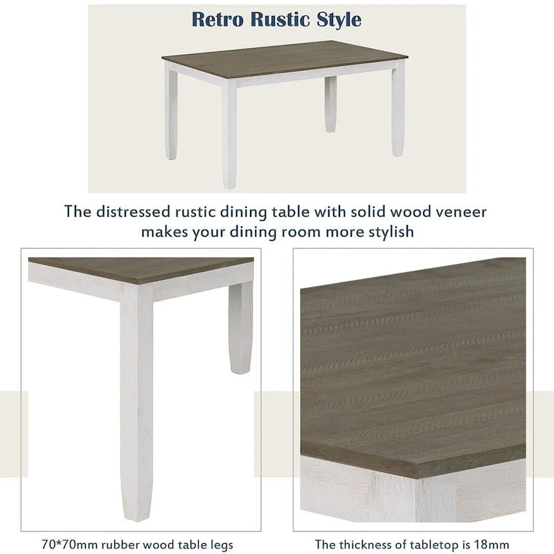 - Charming Rustic Design: This 6-piece dining set, available in Brown/Whitewash and Walnut/Cottage White, perfectly captures country-chic elegance. Its distressed finish beautifully complements contemporary, farmhouse, or coastal decor.