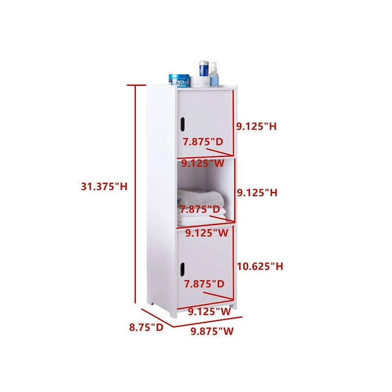 Give your bathroom classic style with this clean-lined cabinet in a solid white finish that blends effortlessly into your space. The two cabinets are perfect for all your bathroom essentials: towels, toilet paper and more, while the middle shelf gives easy access to your daily toiletry needs.
