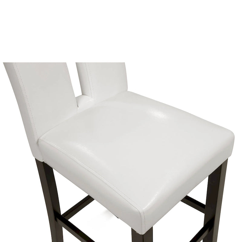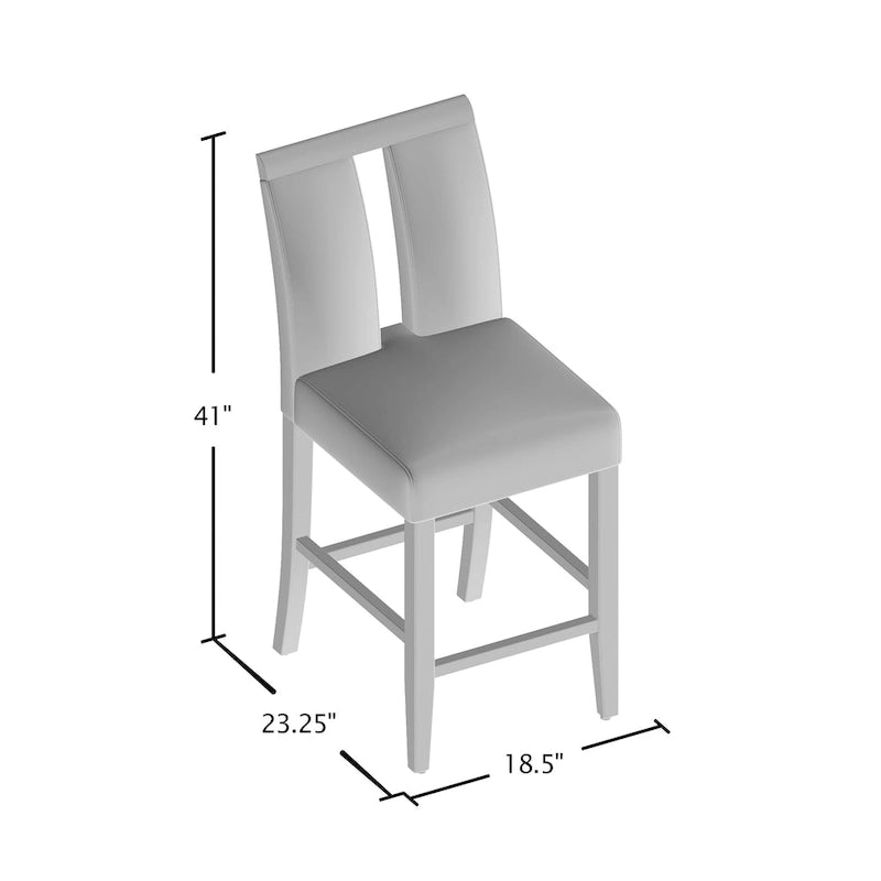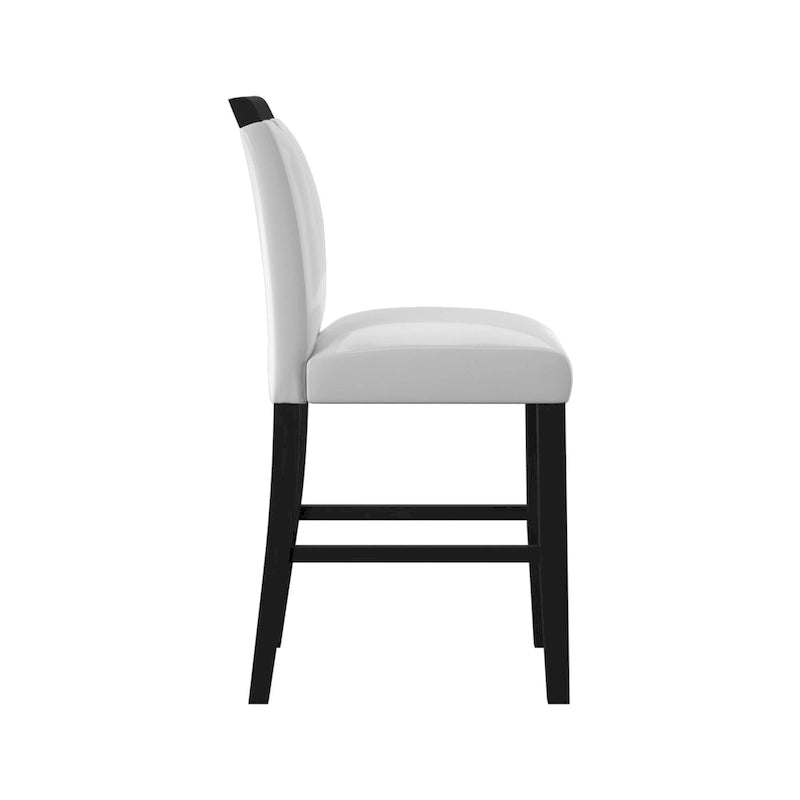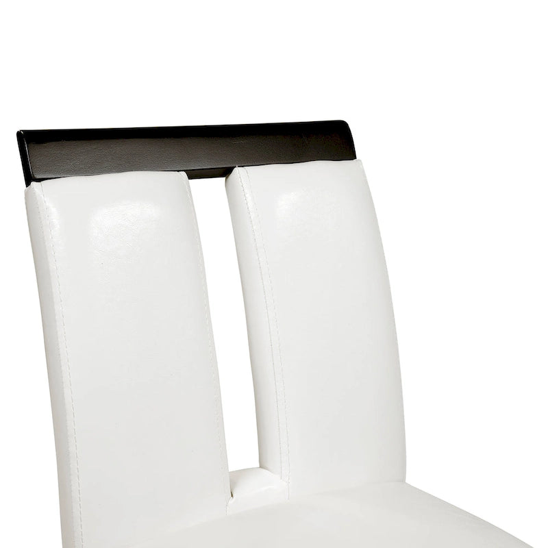 Light up your dining space with this 5-piece contemporary counter height dining set from Furniture of America. Each piece features a solid wood frame in a black finish. The table includes a tempered glass insert at the center of its square top, with three-way adjustable LEDs to create radiant ambiance. The chairs feature plush padded seats and backs wrapped in a sumptuous ivory faux leather upholstery, enhanced by the chic keyhole design. This ultra modern dining set has a brilliant design, comfort, and allure perfect for a contemporary dining space.