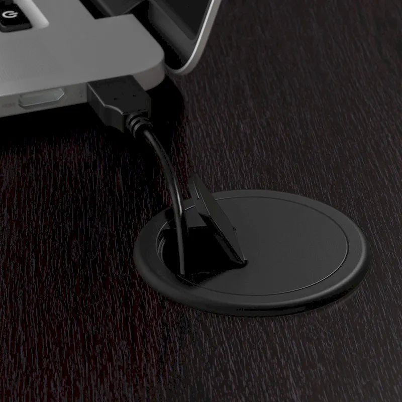 - L Shaped Desk's surface features built-in wire management grommets to keep cords and cables out of the way