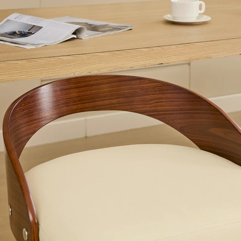 This mid-century modern chair is a stylish blend of high-quality materials and sleek design. With its wooden back and legs finished in a smooth walnut color, it offers a classic aesthetic that suits any contemporary space. The faux leather upholsteryis not only plush and smooth but also easy to maintain, ensuring lasting comfort and durability.