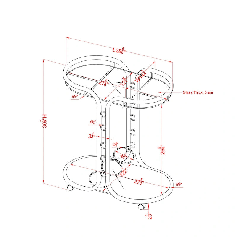 Easy elegance with a modern vibe adds to the artisan-inspired quality and design of this contemporary serving cart. The Daxton glass top serving cart from Furniture of America meets entertaining needs and serves as an opulent decor element between uses. Glossy chrome finish metal forms a decadent frame with an overall oval silhouette without side rails. An upper clear glass surface and lower mirrored bottom shelf accommodate snacks and accessories, as a built-in three-ring wine holder and orange circles serving as side-by-side stemware racks boost the sophisticated look of a must-have piece. Set atop locking caster wheels, this serving cart is the hit of any soiree.