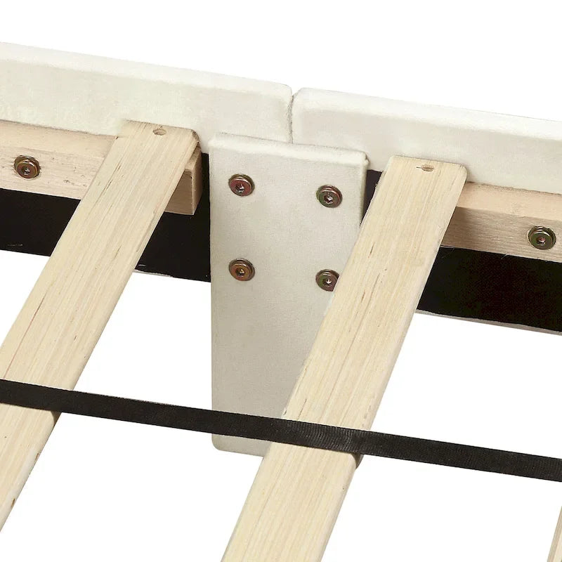 DH BASIC Glam Beige Fully Upholstered Platform Bed with Gold-tone Accents by Denhour