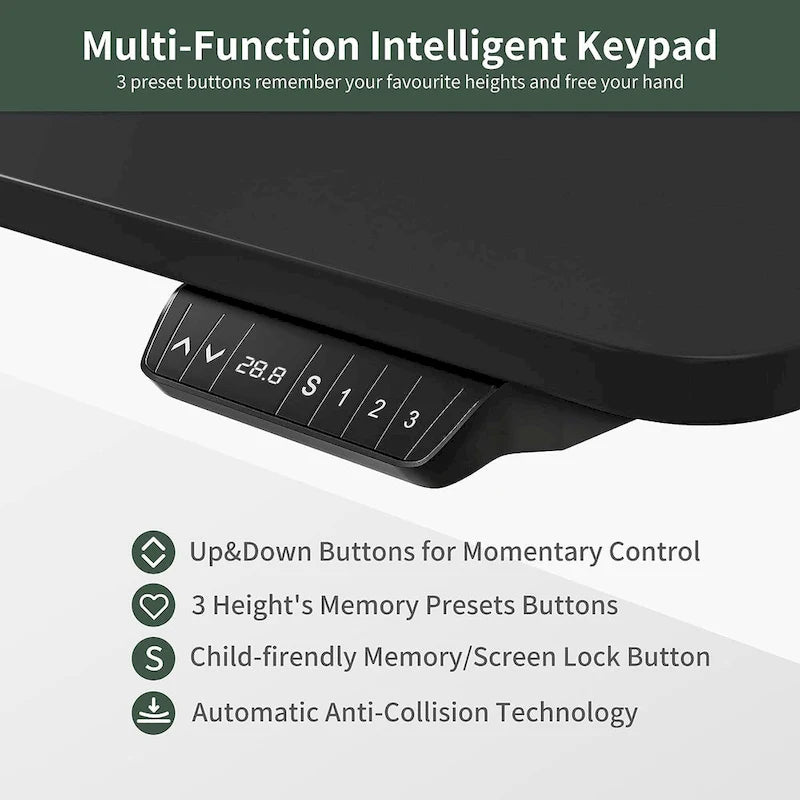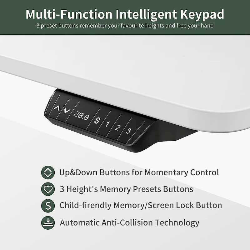 MEMORY HEIGHT AND ANTI-COLLISION TECHNOLOGY: Standing desk has 3 programmable memory height buttons. If the electrical desk encounters obstacles when lifting, it will move 2cm in the opposite direction to avoid possible damage or injury