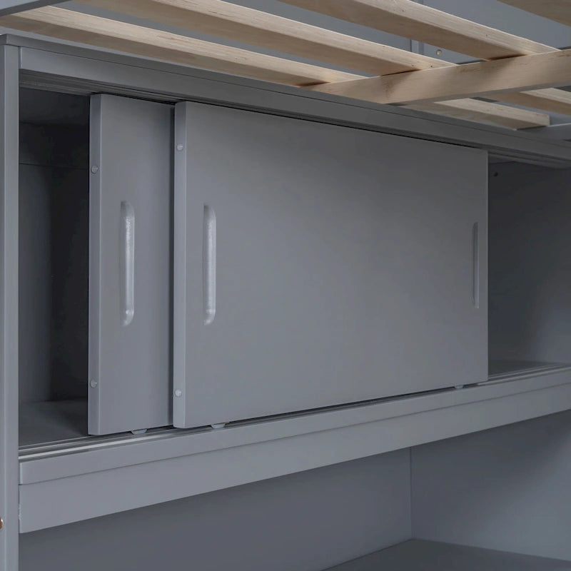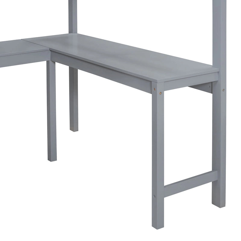 Crafted with high-grade manufactured pinewood, enjoy the Loft bed in the shades of gray and white to match the color scheme of any room. This loft bed with a desk and storage shelves, made of pine wood, is ideal for small bedrooms, saving space for additional placement of study or office areas, and you can decorate it to your liking. The surface of the desk is made of high-quality wood panel, which can bear the weight of more books and decorations.