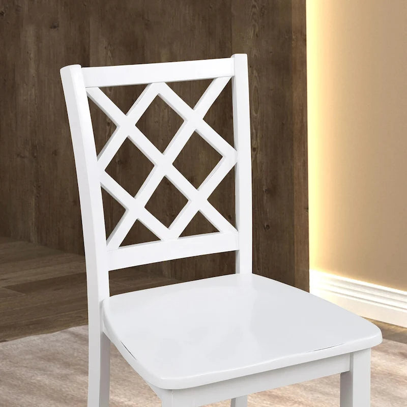 Elevate your dining experience with the Furniture of America Manheim Solid Wood Dining Set, featuring a beautifully crafted table and four chairs. Each chair showcases a stunning diamond crisscross back design, adding a touch of elegance to your dining space. This durable and stylish set combines timeless craftsmanship with modern flair, perfect for any home.