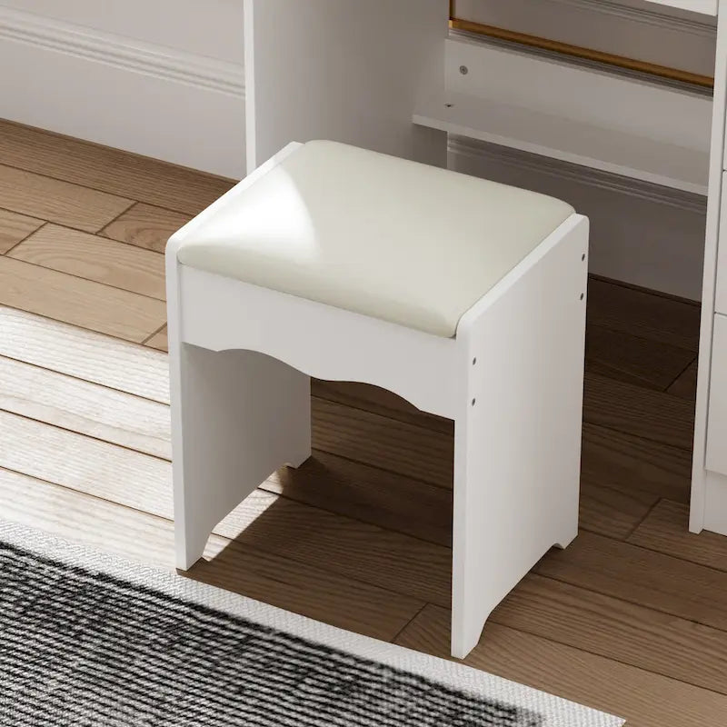 Ample Storage: With thoughtful storage in mind, this vanity set features multiple drawers to neatly organize your beauty essentials. The spacious tabletop with thermoformed glass offers a sleek and easy-to-clean surface. Keep your makeup, jewelry, and accessories effortlessly accessible and organized.