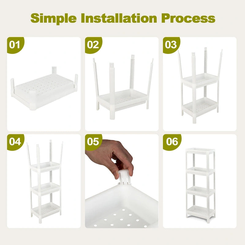 The 2 pack 4-tier slim storage cart can hold multiple items and also improve the utilization of limited space. Additionally, the utility cart set of 2 can be adjusted to different layers based on your needs. 4-tier shelf with appropriate height is easy to classify and store kitchen supplies, bathroom essentials or any other daily items. The closely spaced drainage holes on each shelf are effective to avoid water accumulation. More, the hollow-carved design makes it easy to adapt the humid environment. Such a functional cart will be a fabulous addition to your kitchen, living room, bathroom and so on.
