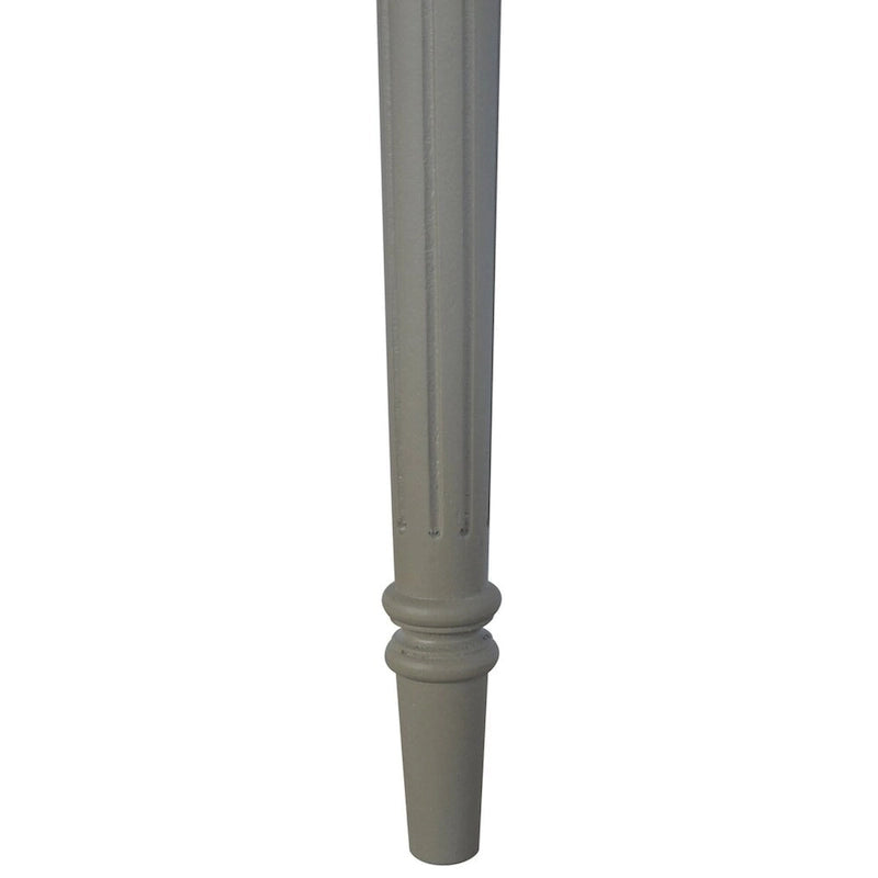This one drawer writing desk is constructed from 100% solid mango wood and has a french grey hand-painted base and a stained oak-ish top. Other features include hand-carved flute legs to add to the vintage French style and a shell handles for easy access into the drawer. The perfect addition to any home.