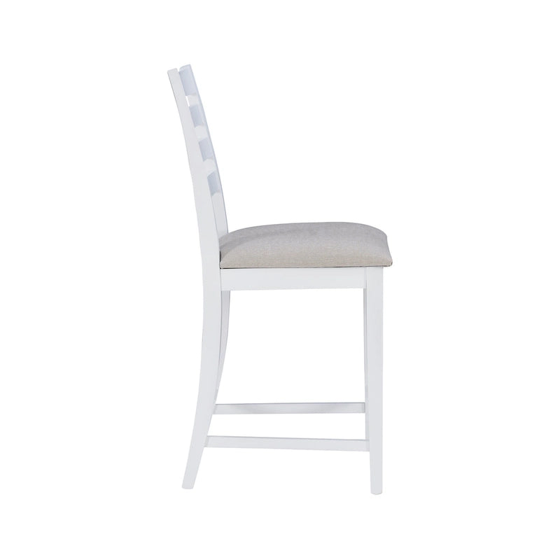 Classy, chic, and effortlessly tiptoeing the line of traditional and modern, this ladder back counter stool is a showstopping addition to dining spaces of all kinds. Constructed of solid beechwood for ensured strength and stability, the frame is then painted white, sealed, and sanded before receiving a glossy lacquer finish. A seat height of 22.5 makes for an ideal match with counter heights of 33 to 38. This counter stool set of two arrives fully assembled and ready to bring new excitement to your home. Available in white, white upholstered & black.