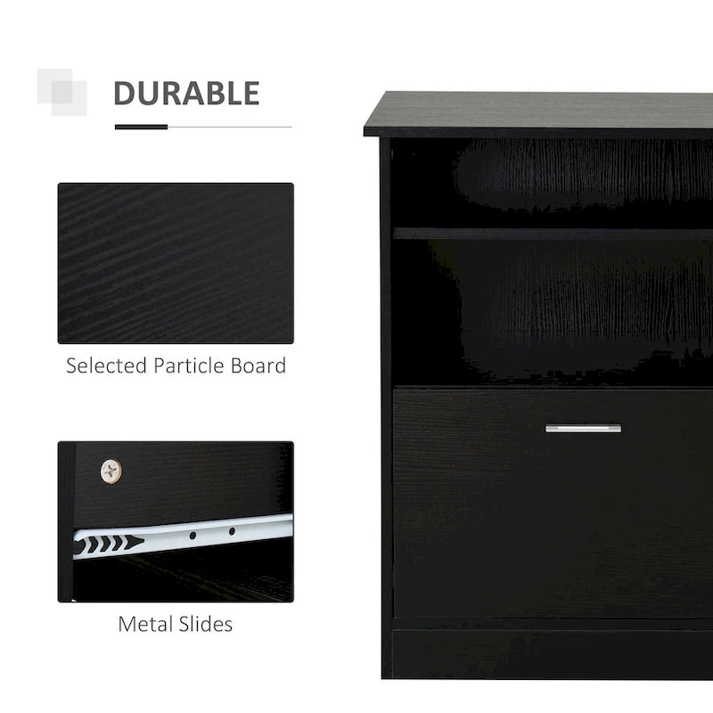 Maximize your workspace with the HOMCOM Computer Desk with Printer Cabinet. Made of durable class P2 particle board with a smooth and easy-to-clean melamine surface, this L-shaped corner desk features ample space for your monitors and laptop, as well as shelves and a slide-out drawer for your printer, books, and stationery. Its contemporary design will fit beautifully into any style of dcor.