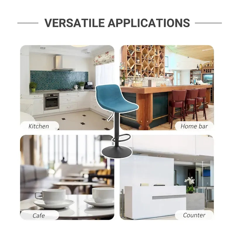 Bring the style of a traditional bar setting with HOMCOM's bar height swivel chairs. These bar chairs come in a set of 2 and have a curved, soft sponge design with cushioned seats and a backrest. The zigzag stitching is unique to bring a focal point of style for any room you decided to use them in. The high bar chairs have an adjustable height feature to fit many styles of counters for convenience. The metal base keeps the bar stools sturdy on the ground and the non-skid rubber pads protect your floor from being scratched. Upgrade your kitchen space and bring true bar design home to you with these bar swivel stools from HOMCOM.