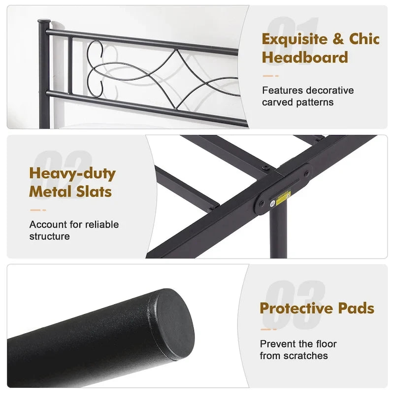 STRONG AND LONG-LASTING METAL FRAME: Built with premium steel, this bed frame ensures a strong, consistent foundation for your mattress. It provides remarkable durability, offering long-lasting stability and strength, even for heavier mattresses.