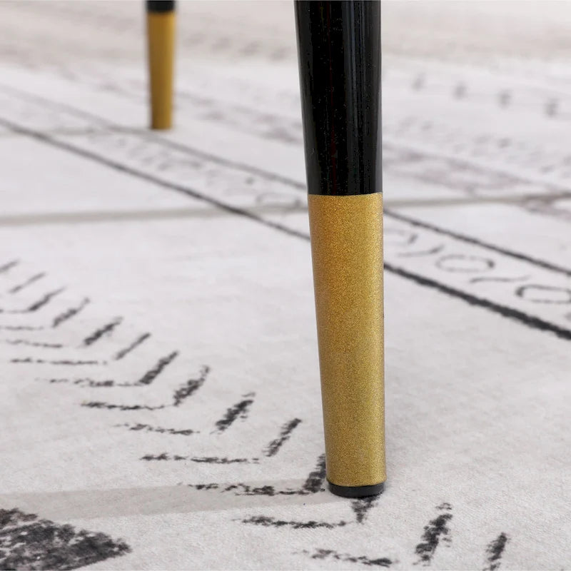 - CONSTRUCTION: Timeless elegance meets enduring craftsmanship in our white round table, crafted with MDF and Rubberwood, providing a sturdy foundation that can withstand the test of time. The chairs are crafted with tough wood, and the legs feature a metallic black-finished gold tone end, ensuring long-lasting durability. Additionally, the chairs are upholstered in plush polyester velvet, making your dining area truly exceptional.