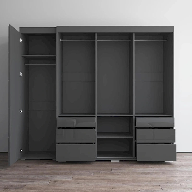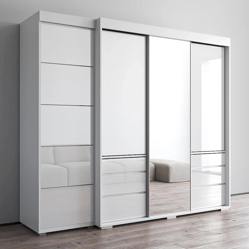 Monaco 3D-EX Wardrobe with 1 MirrorGlass fronts with matte bodyManufactured in and imported from the European UnionModern and unique contemporary designPerfect for those in need of living room storage spaceFlat packed and ready to shipDimensions: 82 inches height x 94.2 inches width x 26 inches depth