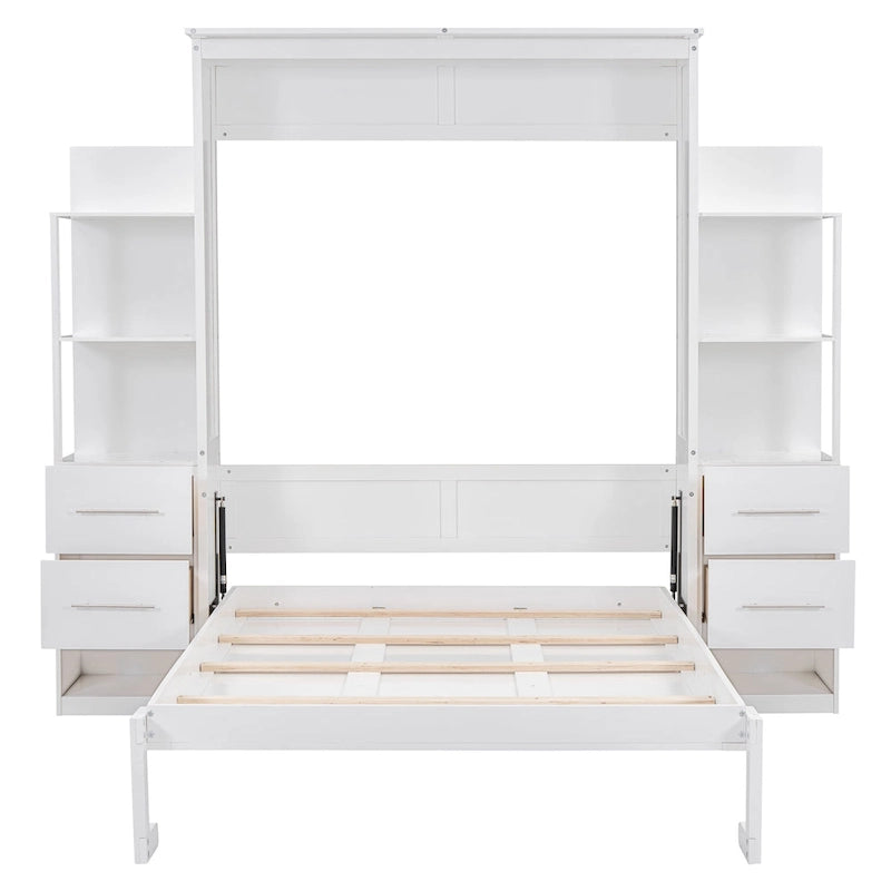 Murphy Bed Wall Bed with Shelves, Drawers and LED Lights