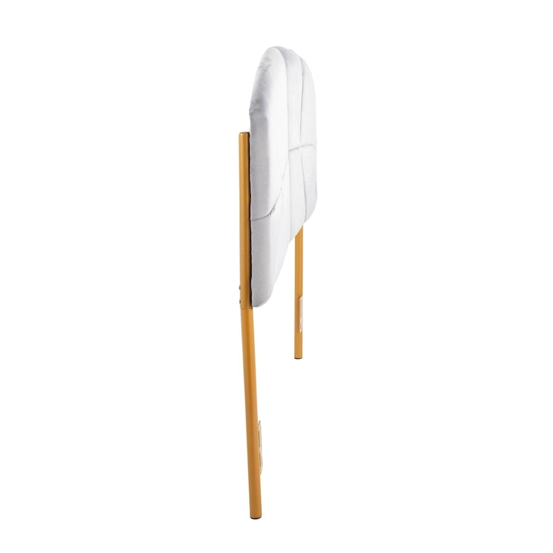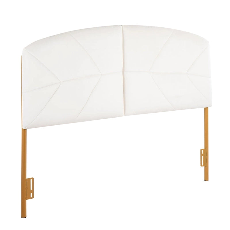 Add glamour and style to any bedroom with the stylish Ralston Headboard. A plush padded headboard is accented by stylish tufting and a luminous gold metal frame. Available in a variety of colors, choose the one that fits your bedroom the best!