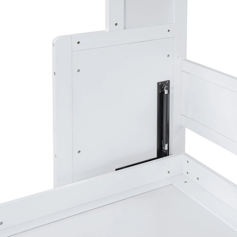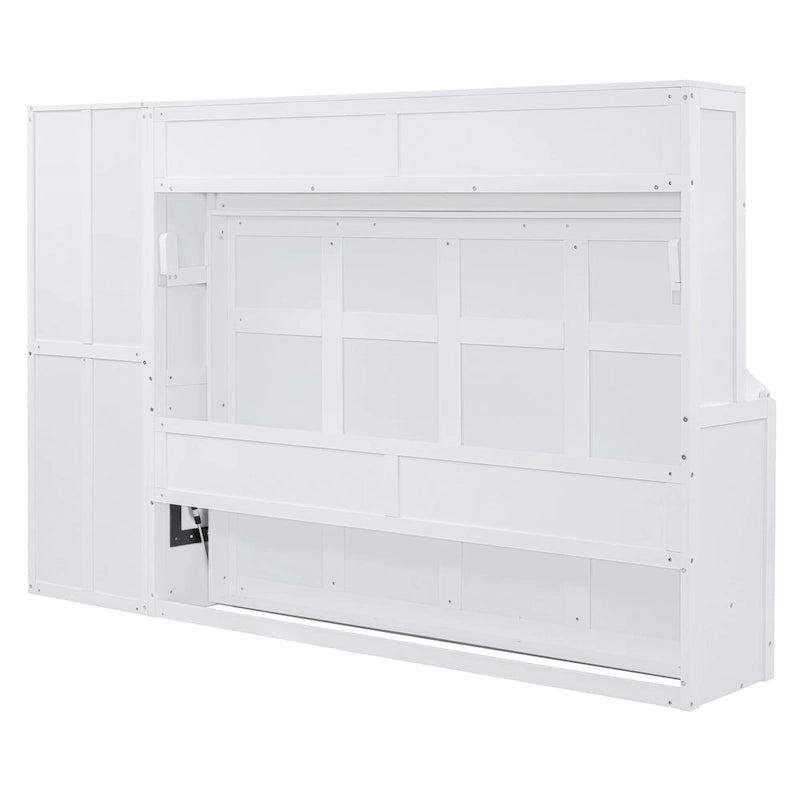White Full Size Murphy Bed with Built-in Shelf and Drawers